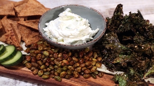 Carla Hall Asian Snack Platter with Crispy Edamame, Kale and Pita |easy|45 to 60 min -