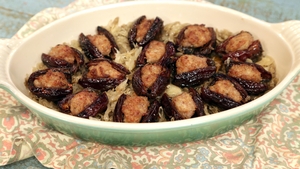 Michael Symon Sausage Stuffed Dates in Sauerkraut |easy|30 to 45 min -